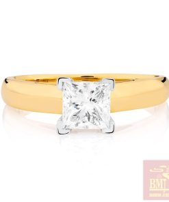 Certified Solitaire Engagement Ring with a 1 Carat Diamond in 14kt Yellow & White Gold